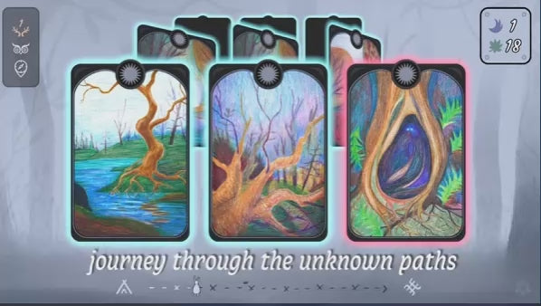 Interagera med kort – varje kort representerar en del av skogen eller en resurs som hjälper dig på din väg.